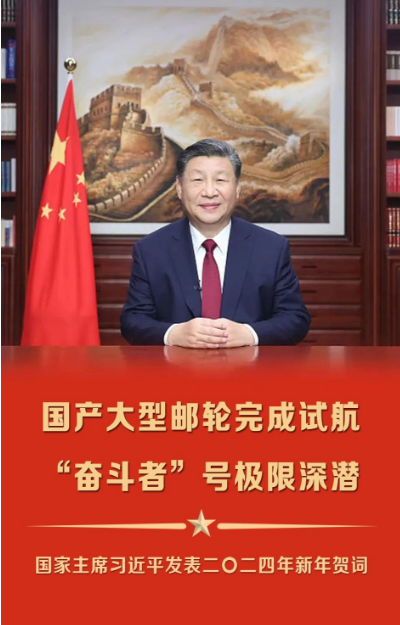 新年前夕,國家主席習近平發表了二〇二四年新年賀詞。賀詞里提及由中國船舶集團設計建造的國產大型郵輪完成試航、牽頭研制的“奮斗者”號極限深潛。